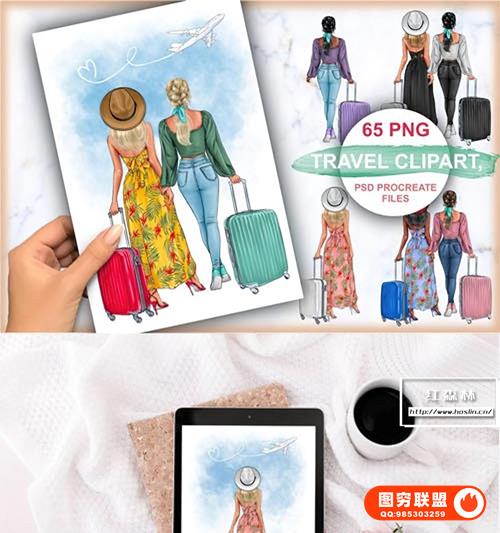 [图片素材]60+旅行出游水彩漫画创作剪贴素材PNG图片素材 60+ Travel Cliparts for Photoshop & Procreate