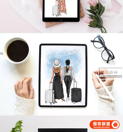 图穷联 » [图片素材]60+旅行出游水彩漫画创作剪贴素材PNG图片素材 60+ Travel
