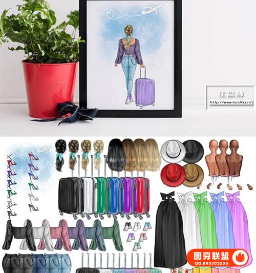 [图片素材]60+旅行出游水彩漫画创作剪贴素材PNG图片素材 60+ Travel