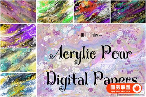 [图片素材]10张丙烯酸涂料喷涂抽象艺术纹理图片素材 Acrylic Pour, Scrapbook Digital Paper, Fine Art Textures