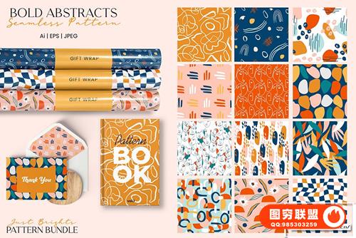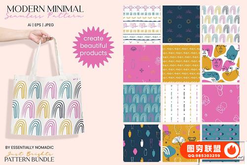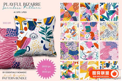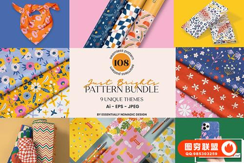 [图片素材]108款花卉艺术几何形状抽象元素无缝图案矢量素材 Just Brights Seamless Pattern Bundle