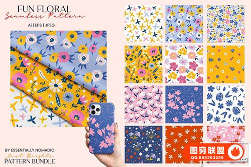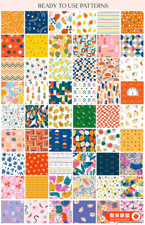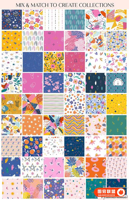 图穷联 » [图片素材]108款花卉艺术几何形状抽象元素无缝图案矢量素材 Just Bright