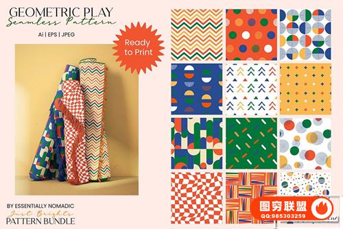 Geometric Play – 12 个单独的 Jpeg 文件 – 1 Ai – Eps 文件格式