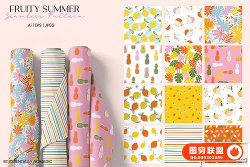 Fruity Summer – 12 个单独的 Jpeg 文件 – 1 Ai – Eps 文件格式