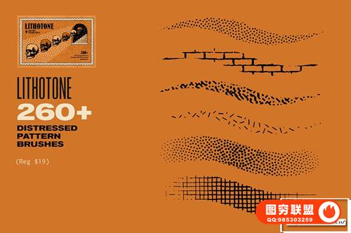 Lithotone: 260 多种 仿旧图案刷(Reg $19)