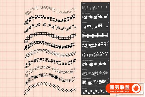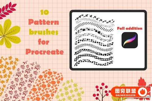 图穷联 » [Ipad笔刷]10个适用于Ipad绘画的秋季树叶花卉图案Procreate笔刷 P