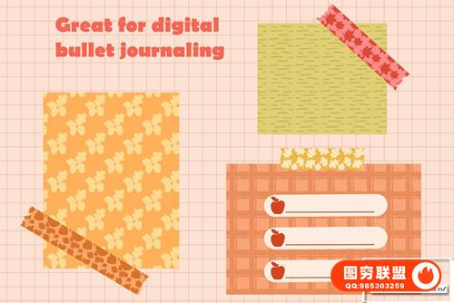 一套 10 个用于 Procreate 的手绘图案画笔。秋季加法。使用这些画笔,您可以在 Procreate 中轻松绘制无缝图案。如果您进行数字规划或子弹日记,您可以使用画笔创建数字纸胶带或便签。