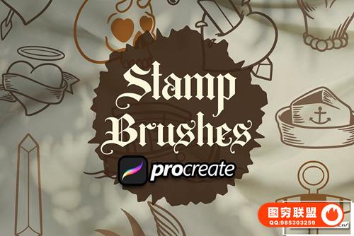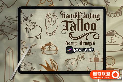 [Ipad笔刷]10个适用于Ipad绘画的复古纹身手绘图案Procreate笔刷 Hand Drawing Tattoos Brush Stamp