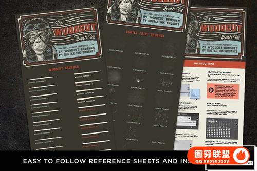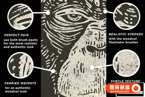 图穷联 » [PS/AI笔刷]32+24支逼真的木刻浮雕版画效果Illustrator 笔刷和墨