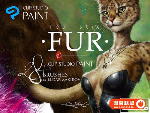 [PS笔刷]28个适用于PS和Clip Studio Paint 的逼真动物毛发绘画笔刷 Realistic FUR: 28 Brushes for CLIP STUDIO PAINT