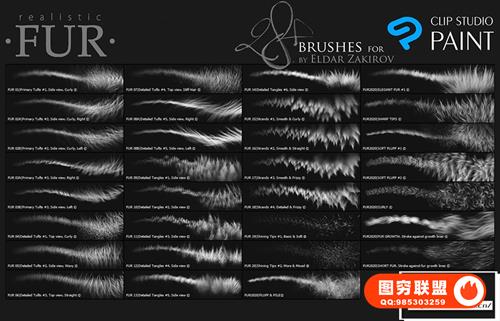 图穷联 » [PS笔刷]28个适用于PS和Clip Studio Paint 的逼真动物毛发绘画
