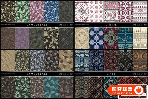 [矢量素材]100个藤蔓花纹迷彩部落民族图腾花纹无缝印花图案矢量素材 100 Seamless Patterns Vol.2