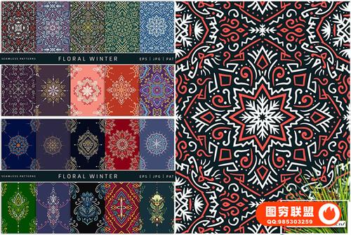 图穷联 » [矢量素材]100个圣诞节针织花纹冬季花卉雪花元素无缝印花图案矢量素材 100 Se