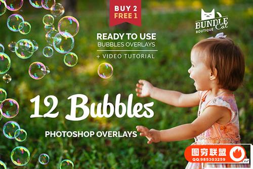 [图片素材]12个高清肥皂泡泡气泡水泡照片合成素材 12 Soap Bubbles Photo Overlays