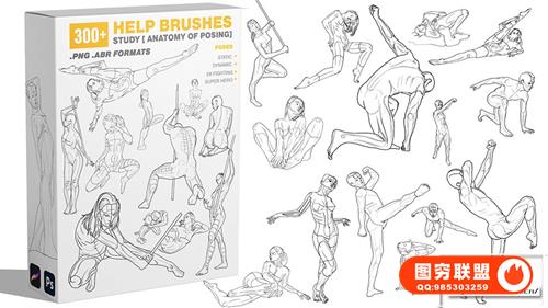 图穷联 » [PS笔刷]300个人体姿势动作剖析艺术线条素描绘画PS笔刷 300 Help Br