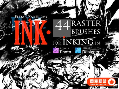 1.保存在“ INK. by EldarZakirov 2016-2018.afbrushes ”文件中的 44 个 Affinity 光栅画笔;
