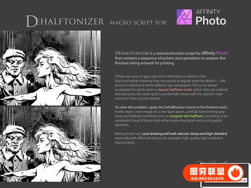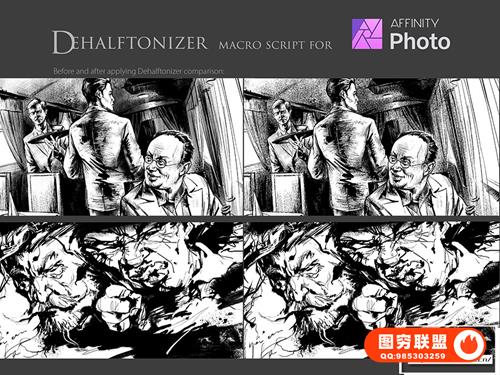 2. Dehalftonizer Macros.afmacro。将灰色区域转换为 100% 黑色或白色的点状半色调以进行打印的macro动作。