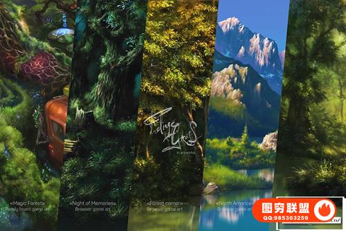 此外,除了将集合保存为 ABR 文件外,我还设计了一个 Photoshop 工具格式(TPL 文件)的集合,因为它允许保存更多设置。 艺术样本和背景是使用演示文稿中显示的“Foliage & Grass”中的画笔创建的。
