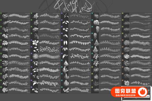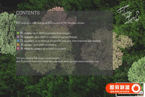 图穷联 » [PS笔刷]60种地表苔藓地衣草地叶子植物PS笔刷套装 60 Photoshop F