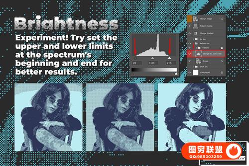 与其他类似产品不同,这不是一个动作包,它是一个带有可编辑和可调整图层的真实 Photoshop 模板。它不只是将您的图像从灰度转换为位图,它还会在智能对象上创建位图效果。您可以自由地尝试颜色、光线、尺寸,以获得您想要的效果并控制整个过程。