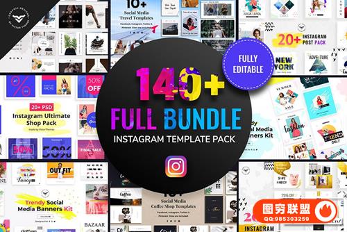 [PSD模板]140款简约时尚Instagram商务杂志企业封面促销宣传相册PSD模板 Instagram Post Templates Full Bundle
