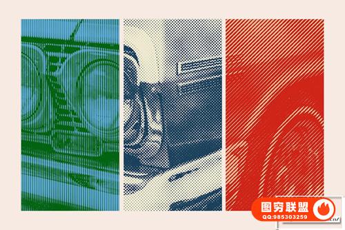 [PSD模板]复古做旧半色调点线条印刷纹理特效海报设计PS模板 Studio 2am – Halftoner:5 Retro Halftone Effects