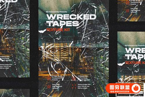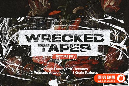 关于产品:Wrecked Tapes Texture Kit:33 个物体撕开的胶带