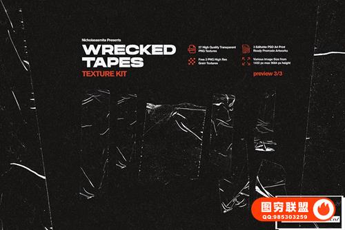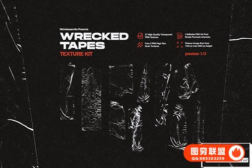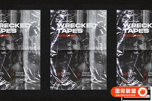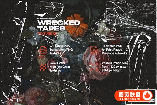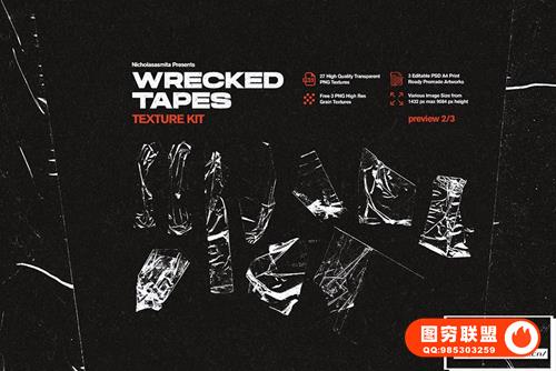 图穷联 » [PNG素材]33款撕裂透明胶带粗糙划痕褶皱胶带纹理效果PNG图片素材 Wrecke