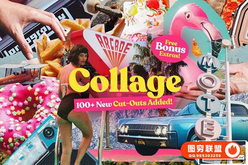 Collage 是一套 290 多种高分辨率复古风格的剪纸。每个文件都具有逼真的半色调和颗粒效果,适合复古杂志外观。结合任何图像,您可以创建无数独特的场景。