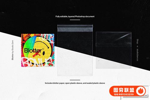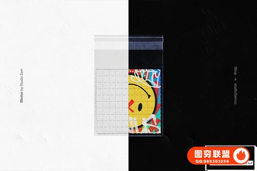 图穷联 » [PS样机]复古塑料袋包装穿孔吸墨纸迷幻效果卡片海报设计PS样机 Studio 2a