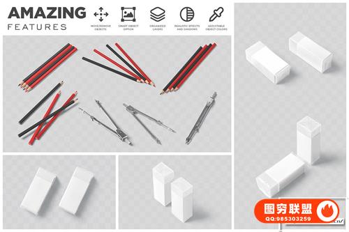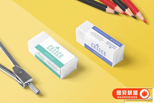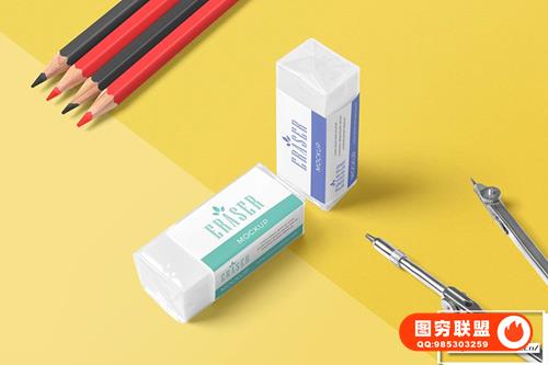 图穷联 » [PS样机]4个橡皮擦办公文具展示PS样机 Eraser Mockups