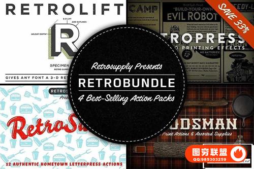 [PS动作]Retrosupply 最畅销的4款半色调复古色彩纹理效果PS动作合集