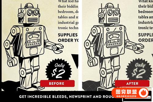 注意:RetroPress 旨在创造复古新闻印刷效果。建议您在一件彩色艺术品上使用它。结果会因彩色艺术品而异。