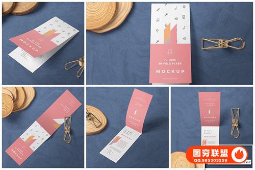 图穷联 » [PS样机]5个DL标准尺寸折页传单卡片设计PS展示样机 DL Size Fold