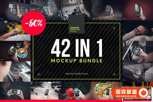 [PS样机]42款Iphone手机Apple Watch智能手表穿戴设备使用场景展示PS样机 42 in 1 Mockup PSD Bundle