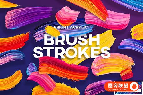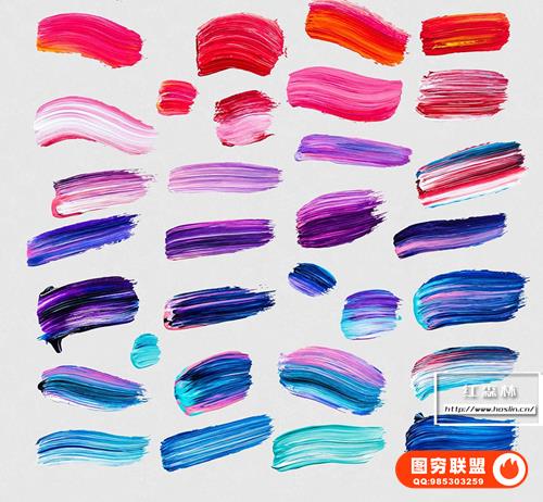 图穷联 » [图片素材]200张炫彩渐变色手绘丙烯酸毛刷绘画笔触效果PNG图片素材 Vivid