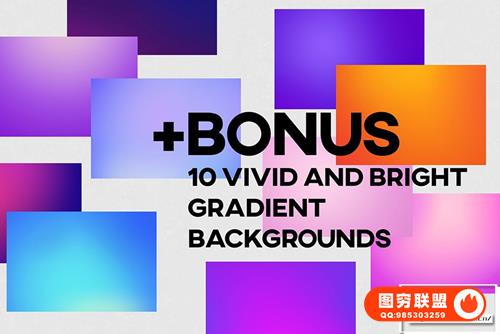 您还可以获得一组 10 个 4500×3000 像素的明亮渐变背景,以便立即开始创建自己的艺术作品。
