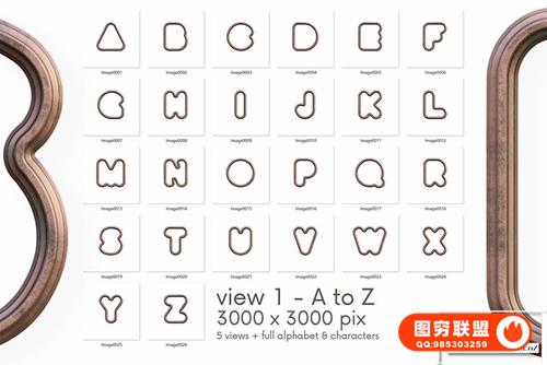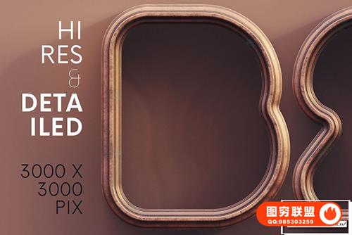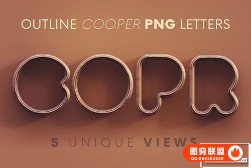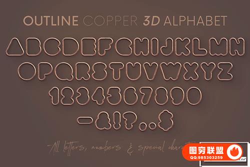 [PNG素材]44个工业风3D镂空字母数字锈迹肥胖圆润效果PNG图片素材 Outline Cooper – 3D Lettering