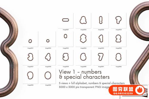 图穷联 » [PNG素材]44个工业风3D镂空字母数字锈迹肥胖圆润效果PNG图片素材 Outli