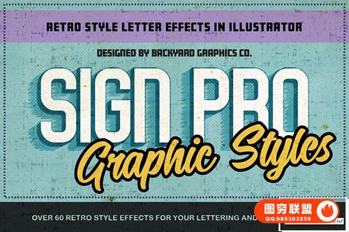 SignPro Vector Effects – [AI样式]60种经典简洁复古风格矢量纹理效果Illustrator色板文本样式 Sign Pro – Retro Vector Text Effects