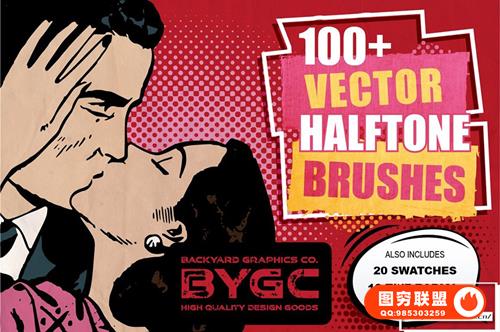 100个复古半色调渐变AI色板笔刷👇