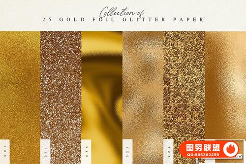 Gold Foil Glitter Paper Vol.2 – 一套 25 个豪华的金色闪光背景,用于品牌和装饰您的项目。为假日设计、产品、网页设计、在线商店、插图、徽标、图形、邀请函、文具和印刷品使用金色和华丽的背景。创建挫败文本、海报、名片、博客按钮等等!