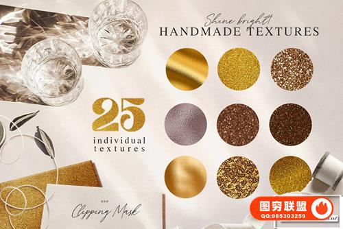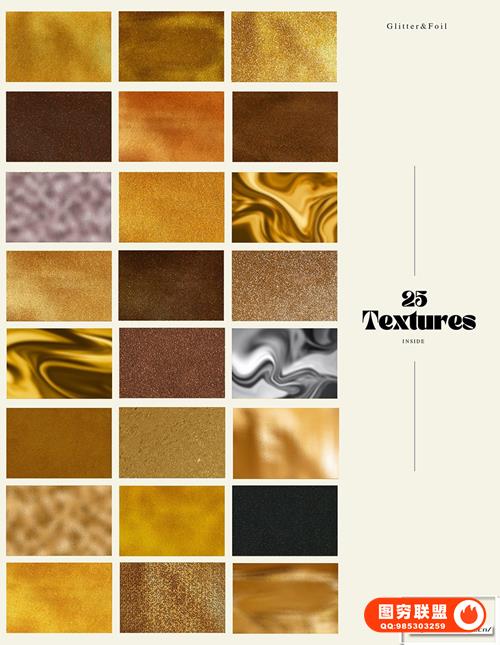 25 个金箔、闪光、金属华丽纹理,高分辨率(6000×4000 像素,300DPI)