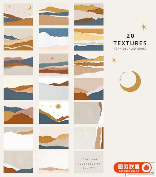 20 个预制纹理 (JPG: 7200×5400 px, 300 dpi)