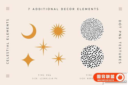 5 个天体装饰元素(PNG:1228×1216 像素,300 dpi)