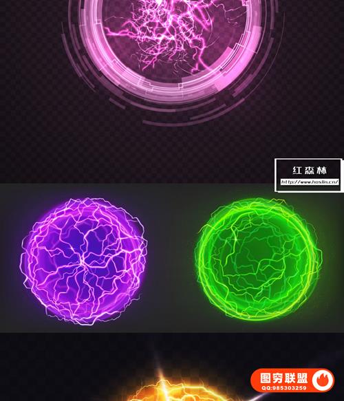 图穷联 » [矢量素材]11款魔法特效发光火花闪电火球电离子球光效元素AI矢量设计素材