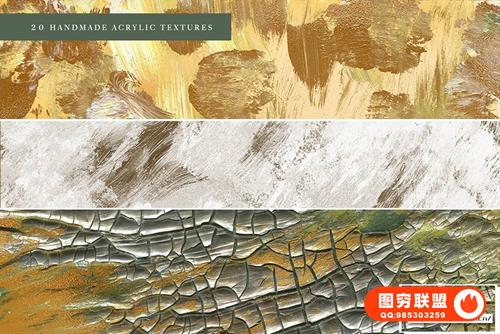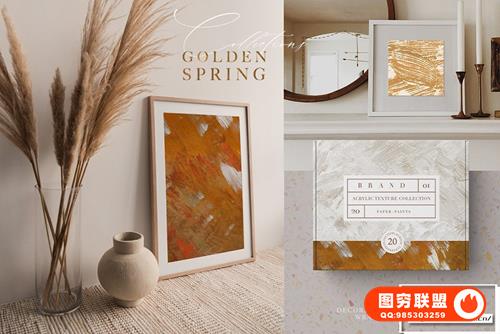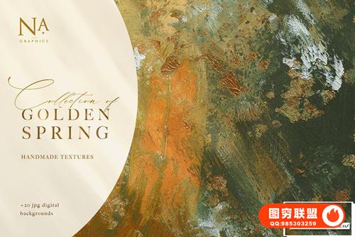 20 种金色春天丙烯酸油画纹理