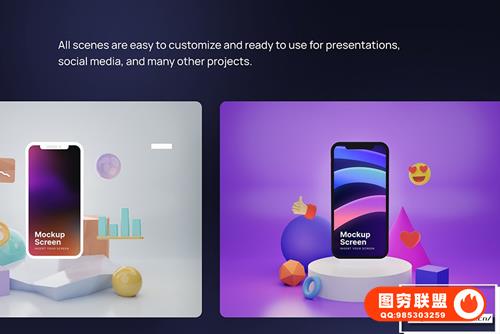 [图片素材]8款现代时尚科技金融电商教育音乐背景3D手机移动设备模型 Mobby – 3D Phone Scene Creator