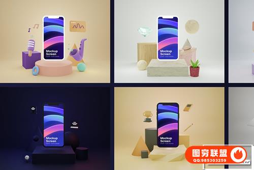 图穷联 » [图片素材]8款现代时尚科技金融电商教育音乐背景3D手机移动设备模型 Mobby -