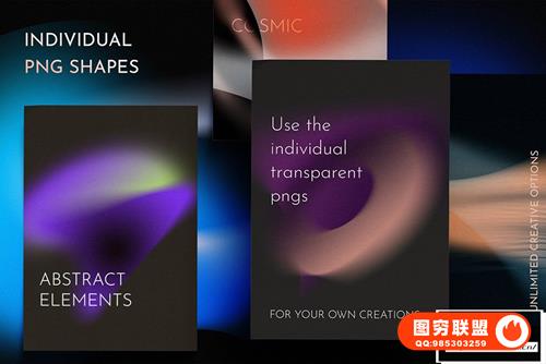 很高兴向您介绍宇宙暗渐变背景,一套以灯光为抽象元素的暗渐变背景。在这组中,您将找到 20 个高分辨率背景、纹理、各种颜色组合,这些组合也是可编辑的(在 Adobe Photoshop 中)。我还包含了 55 个单独的 PNG 元素,因此您可以完全发挥创意并提出自己独特的设计:)